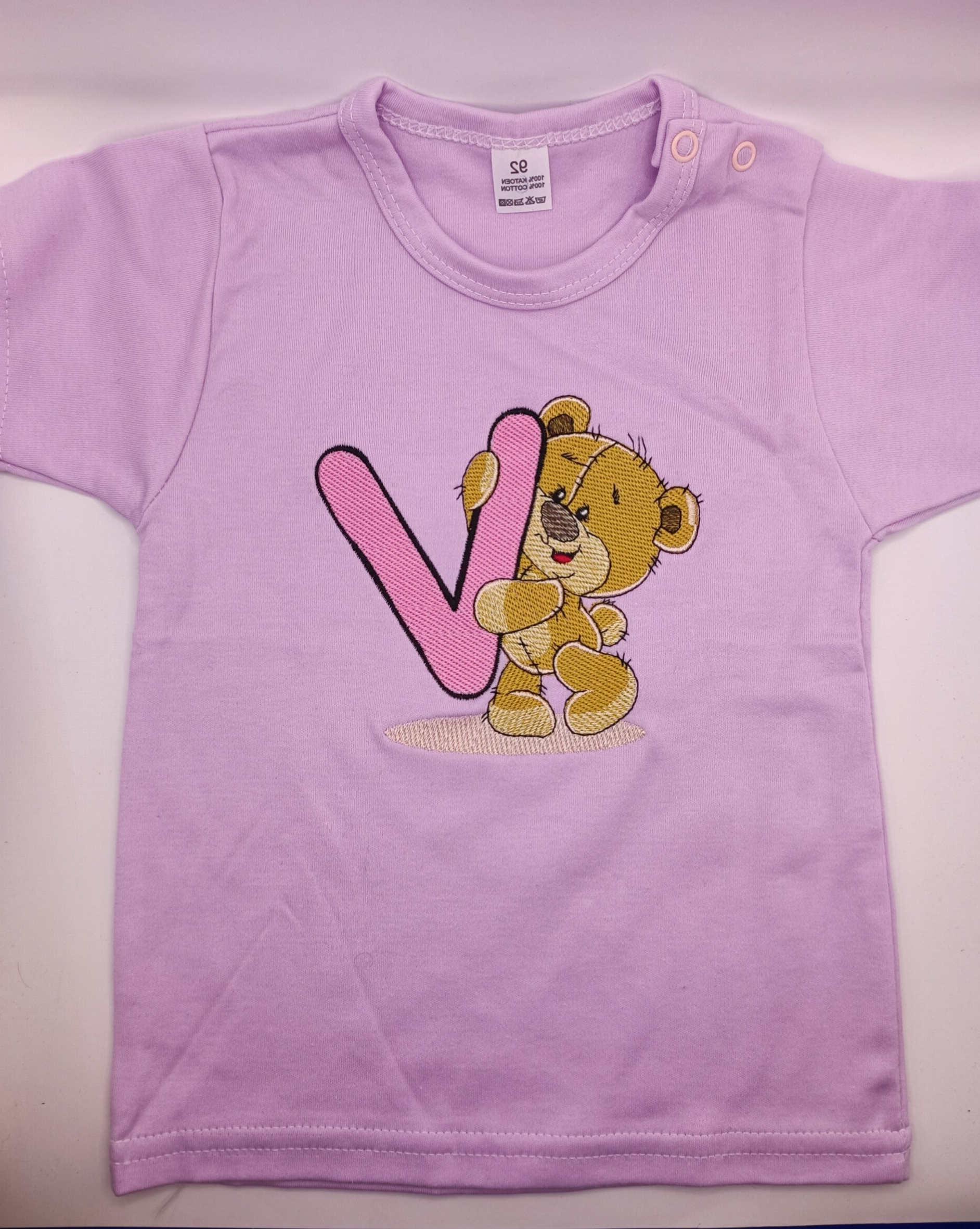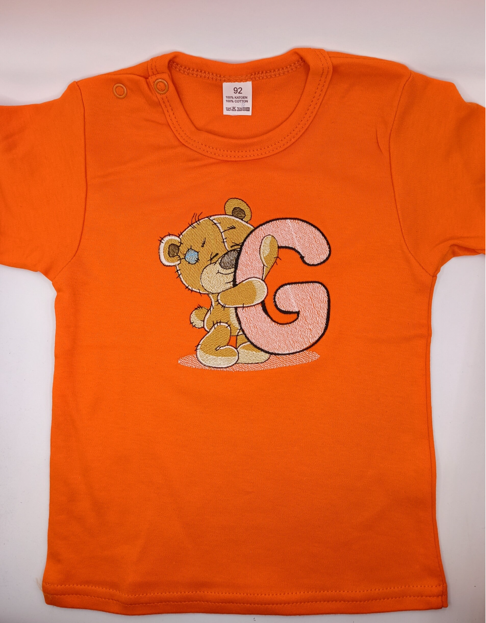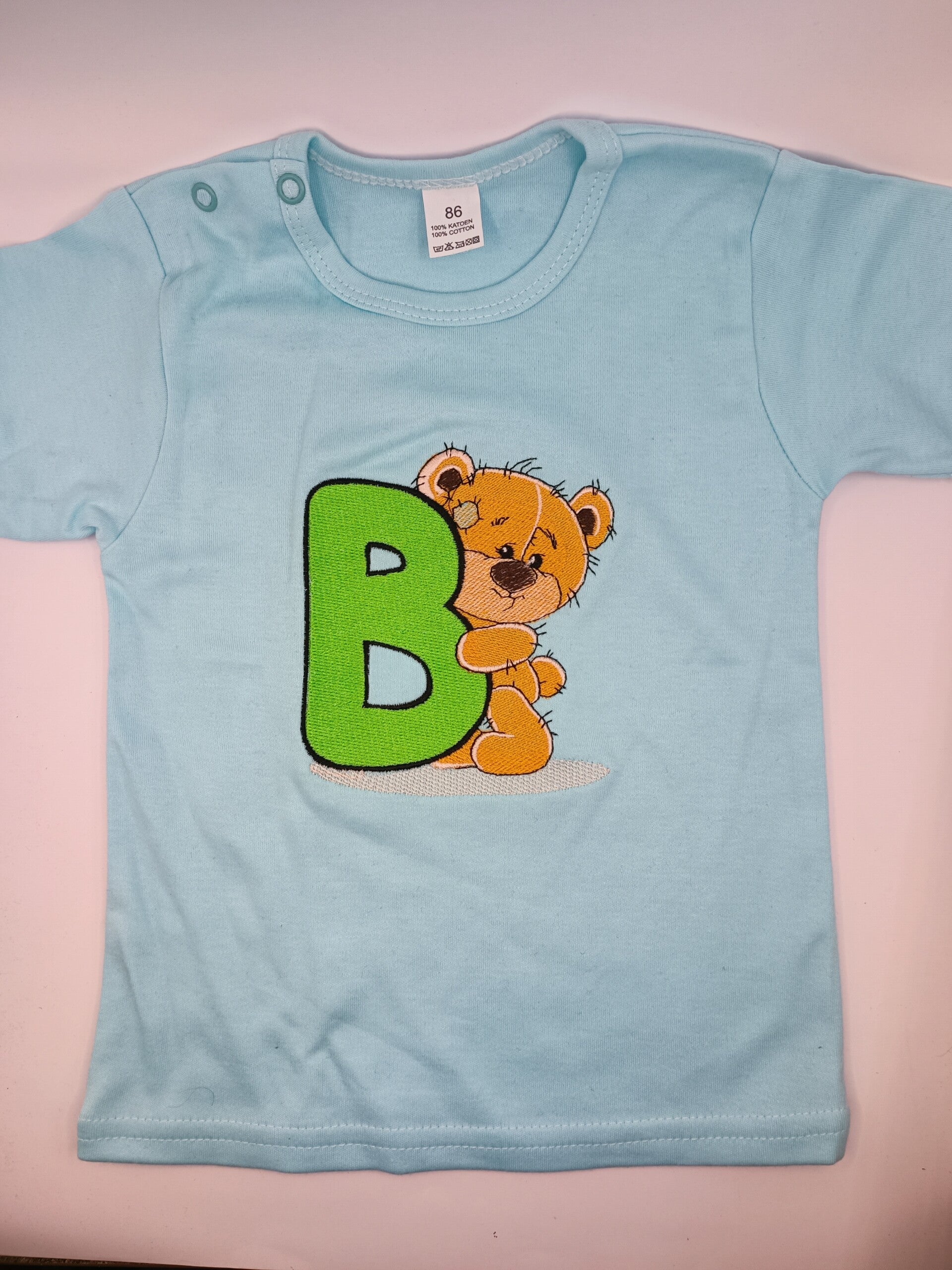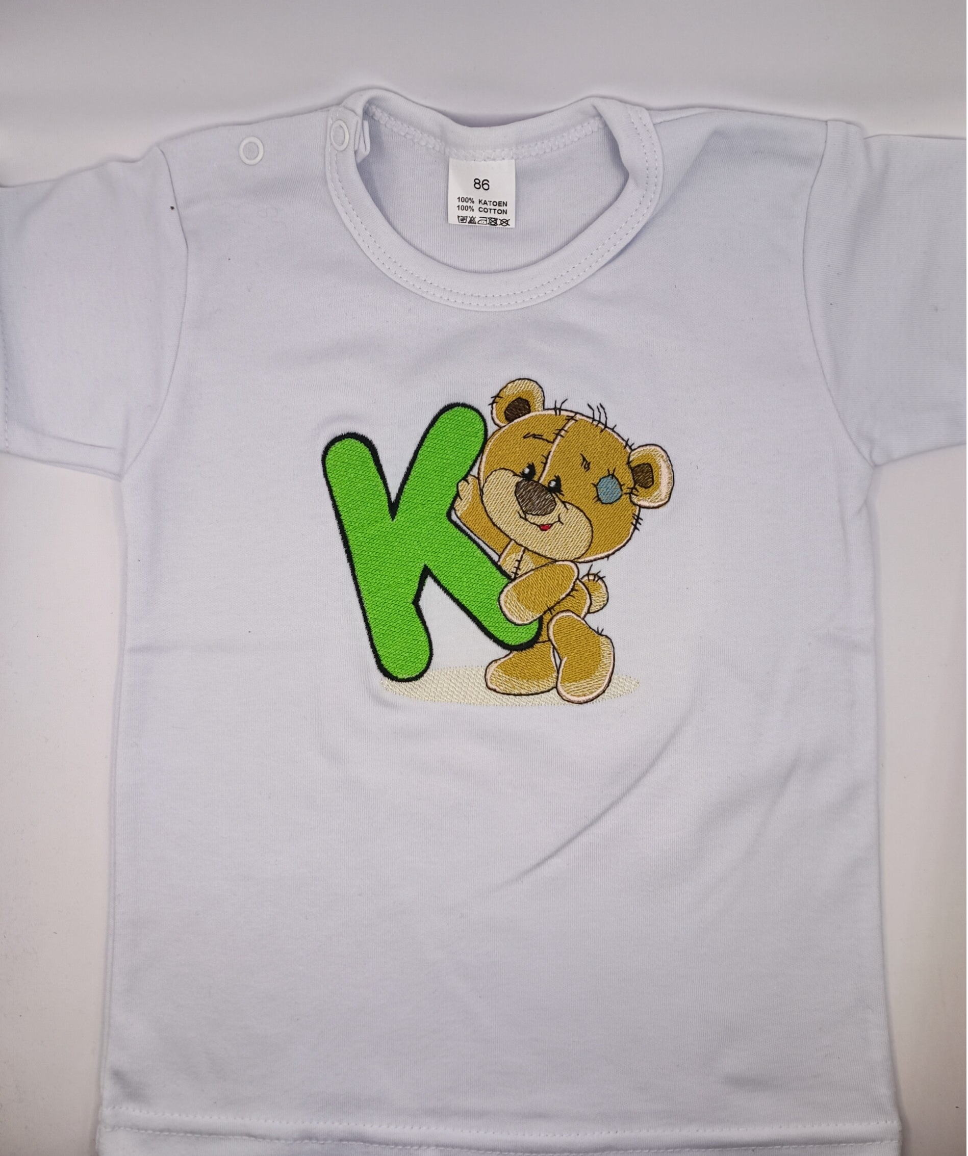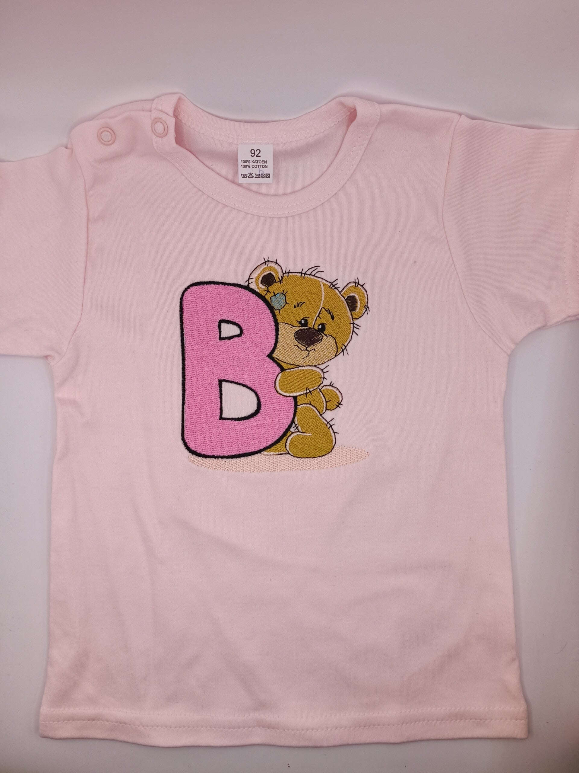 met geborduurde eerste letter naam kindje en een schattig beertje