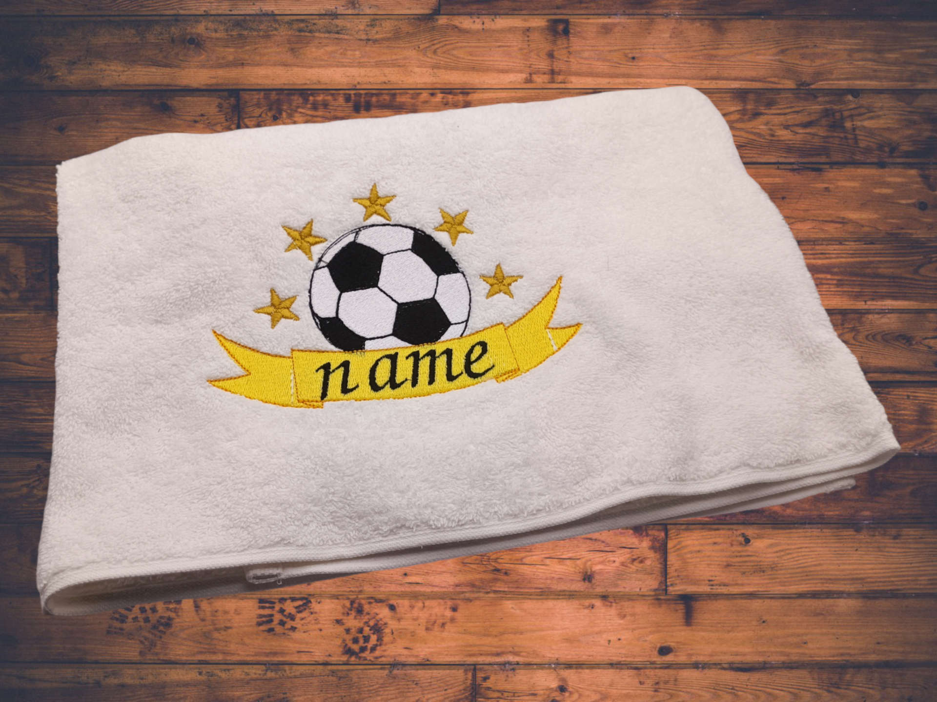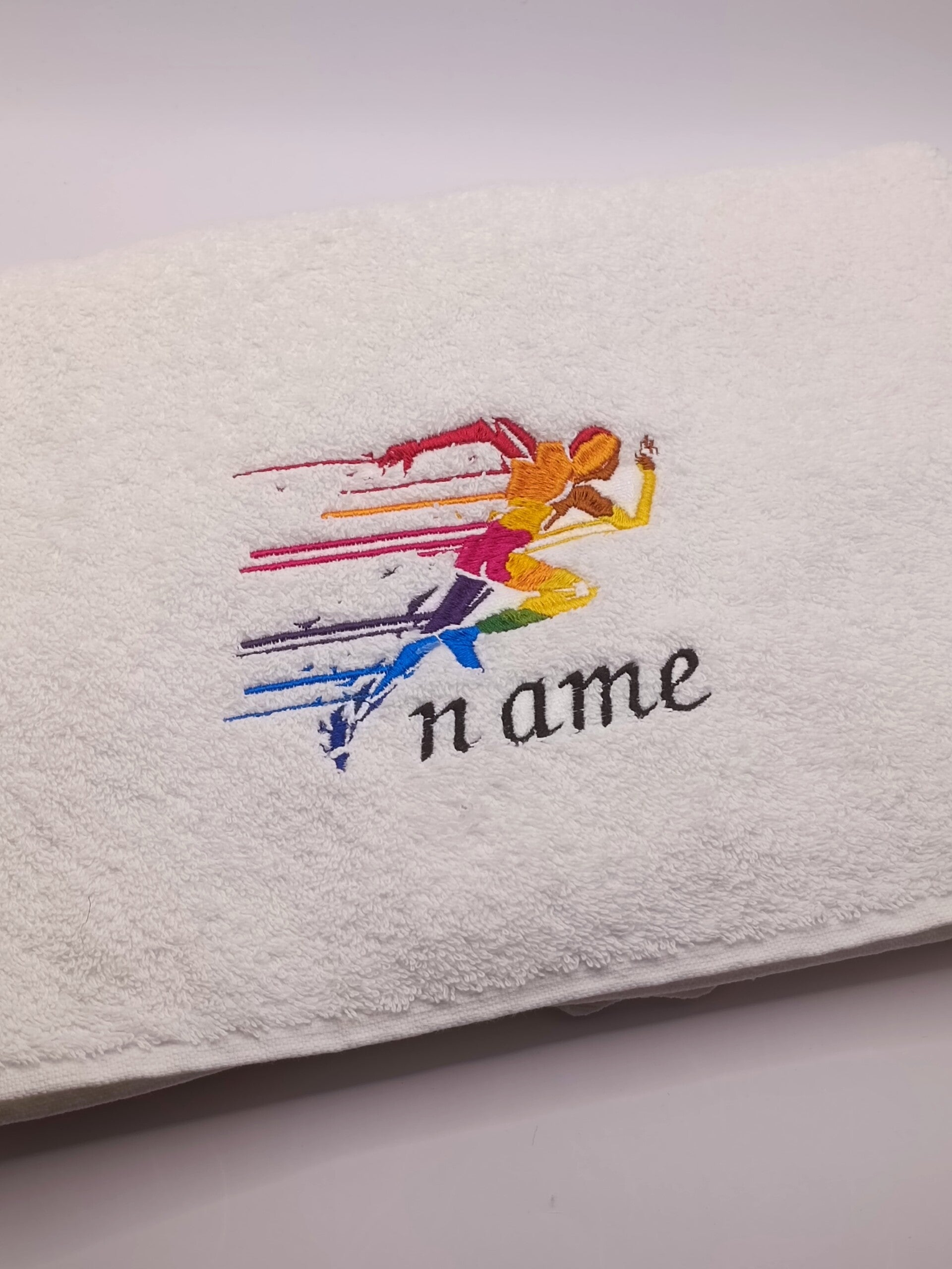geborduurde mooie sporthanddoek met naam en afbeelding in diverse sporten