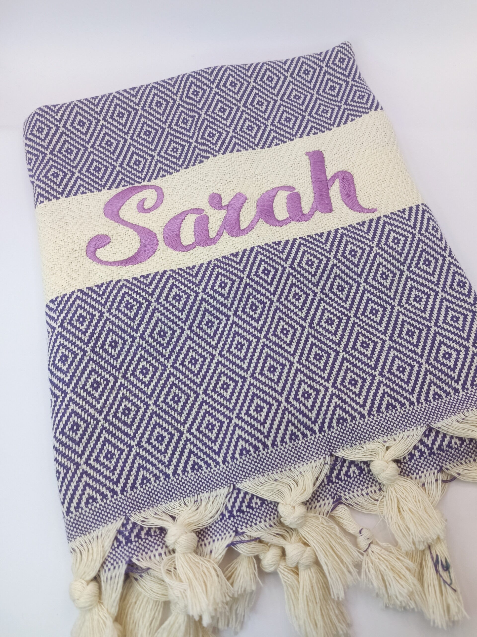 mooie kwaliteits hammam handdoek of strandlaken geborduurd met je naam. Wordt ook veel gekozen als geschenk.