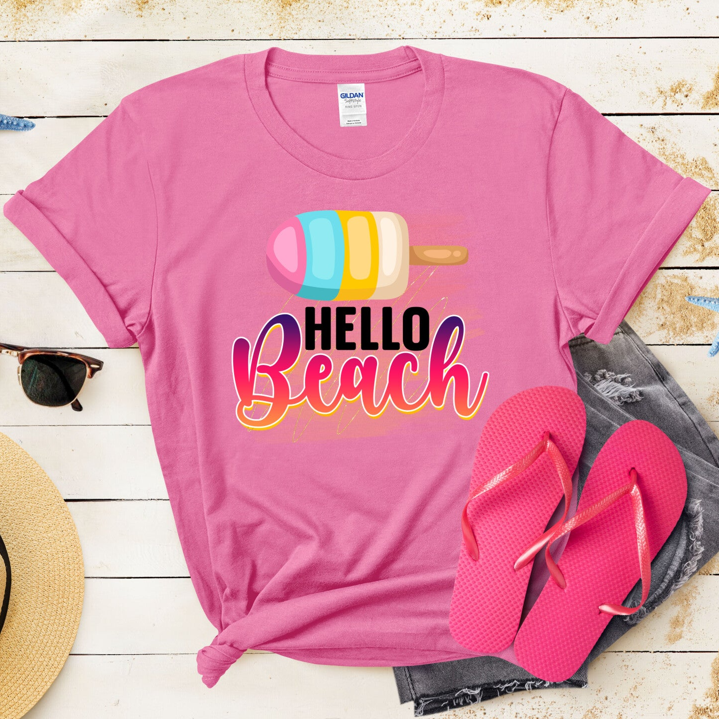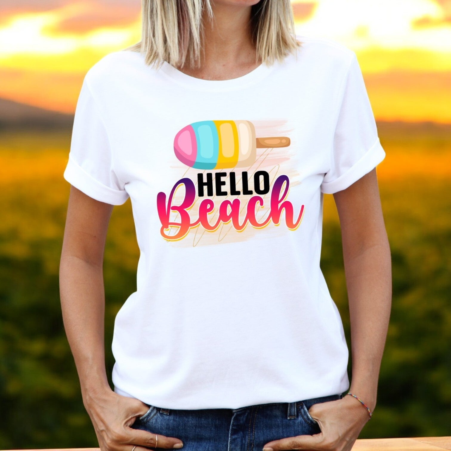 Voel de zon op je huid en de vrijheid van lange zomerdagen met dit frisse dames T-shirt met een sprankelende zomerprint. Het ontwerp – denk aan tropische bloemen, zonsondergangen, palmbomen of speelse pasteltinten – straalt warmte, lichtheid en positiviteit uit. Een echte eyecatcher die moeiteloos je zomeroutfit compleet maakt.