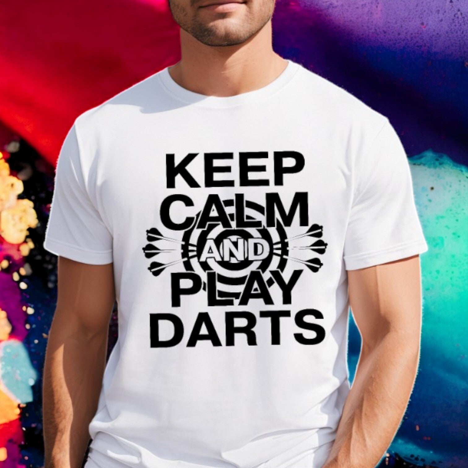 Blijf rustig, mik scherp en gooi die perfecte worp – Keep Calm and Play Darts. Dit mannelijke witte T-shirt met een speelse en herkenbare print ademt het populaire dartsgevoel en brengt de ontspannen, gezellige sfeer van een dartavond onder vrienden tot leven. Of je nu in de kroeg speelt, thuis in de garage of op toernooi, dit shirt laat zien dat jij weet hoe je de juiste focus combineert met plezier.