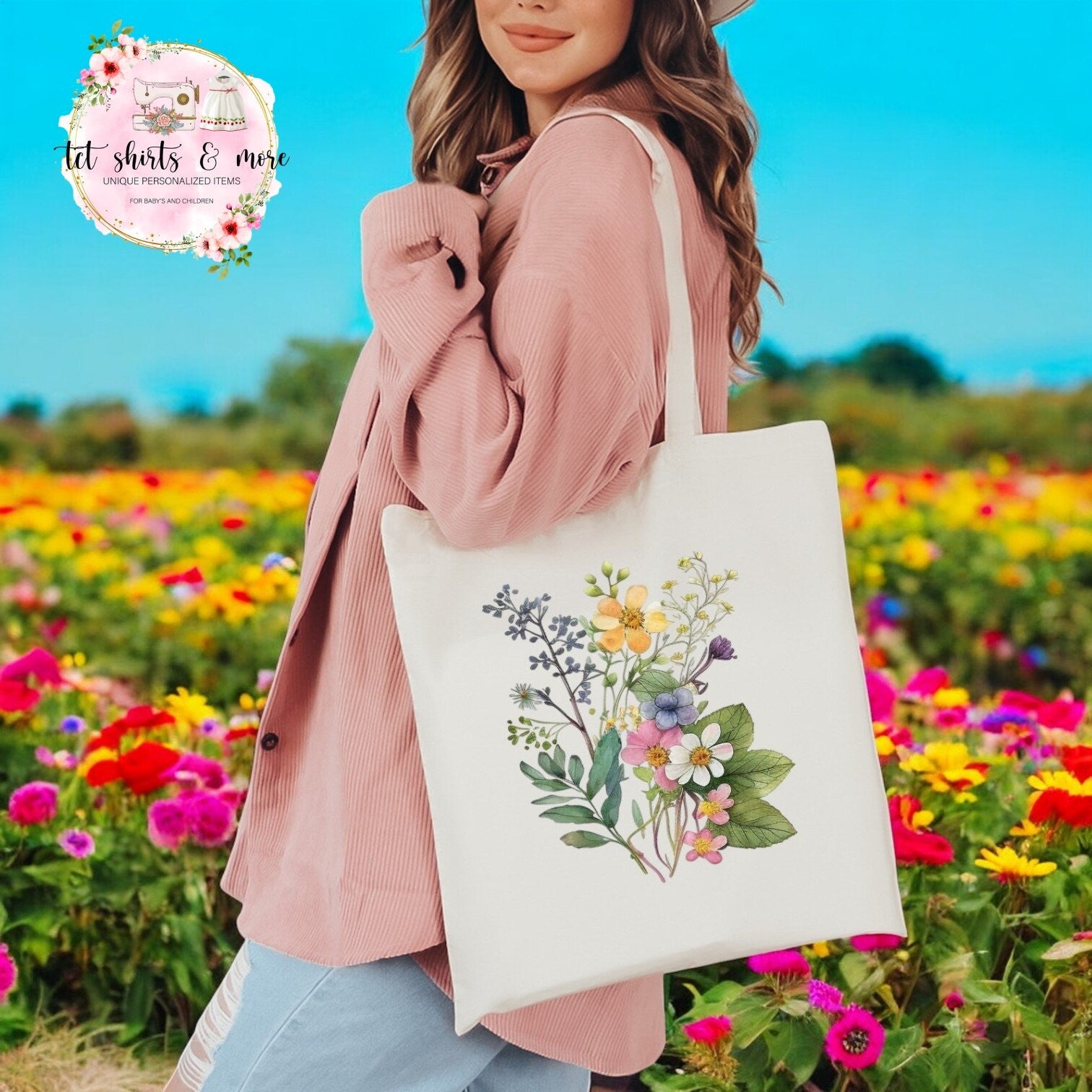 mooie katoenen totebag/strandtas met wilde bloemen opdruk (DTG)