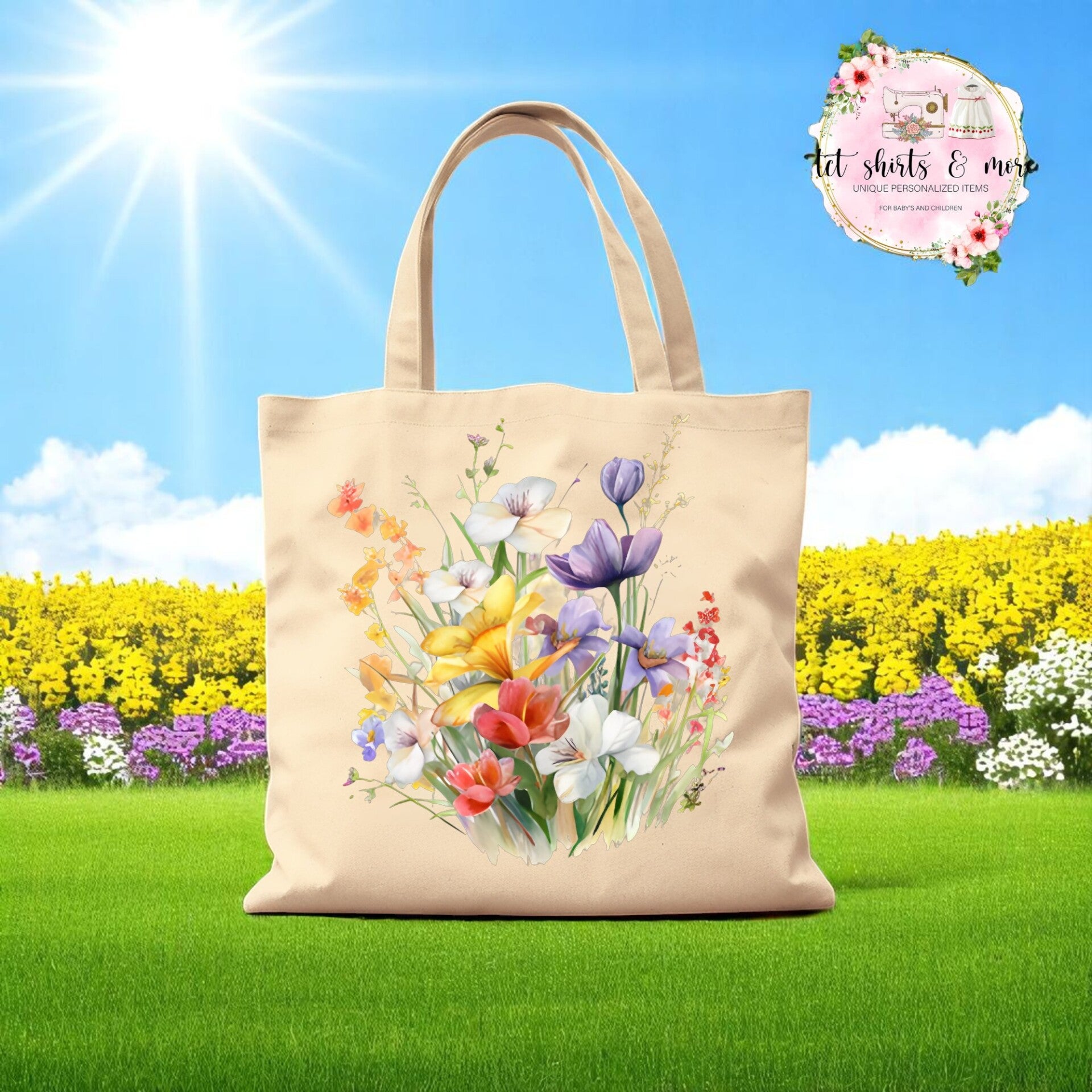 mooie katoenen totebag/strandtas met wilde bloemen opdruk (DTG)