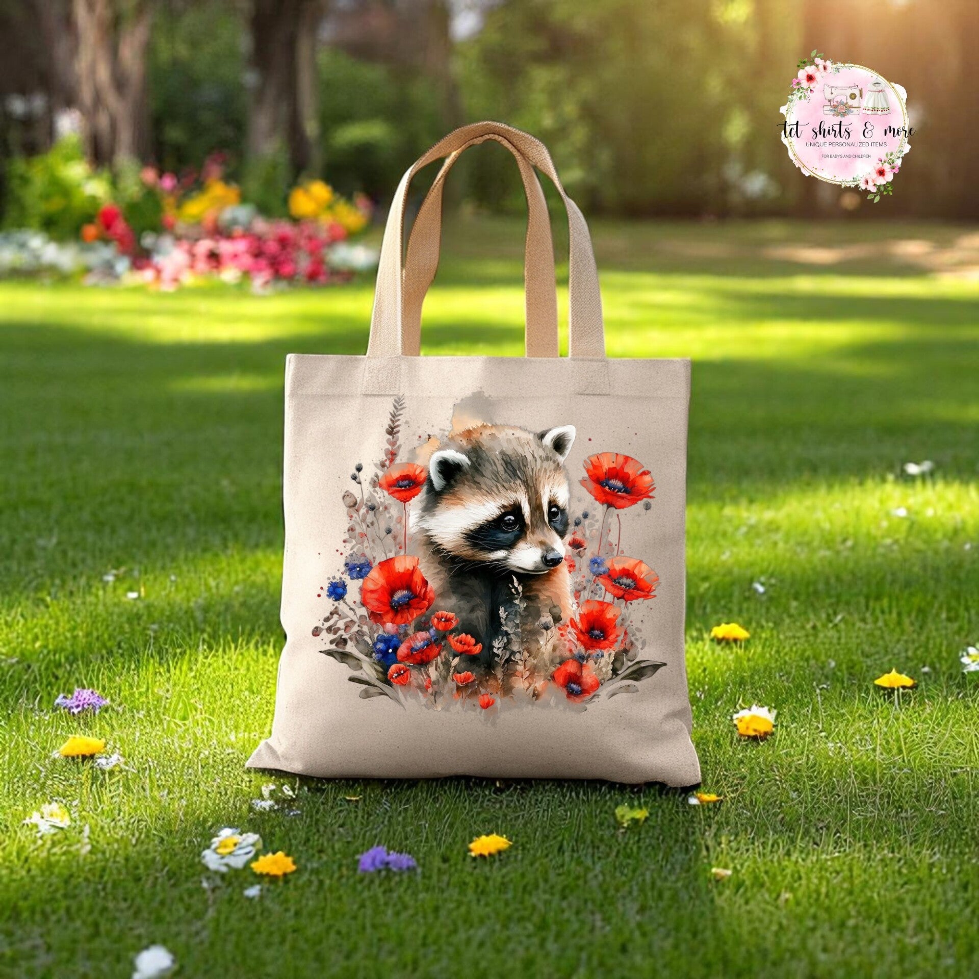 mooie katoenen totebag/strandtas met schattige wasbeer opdruk (DTG)