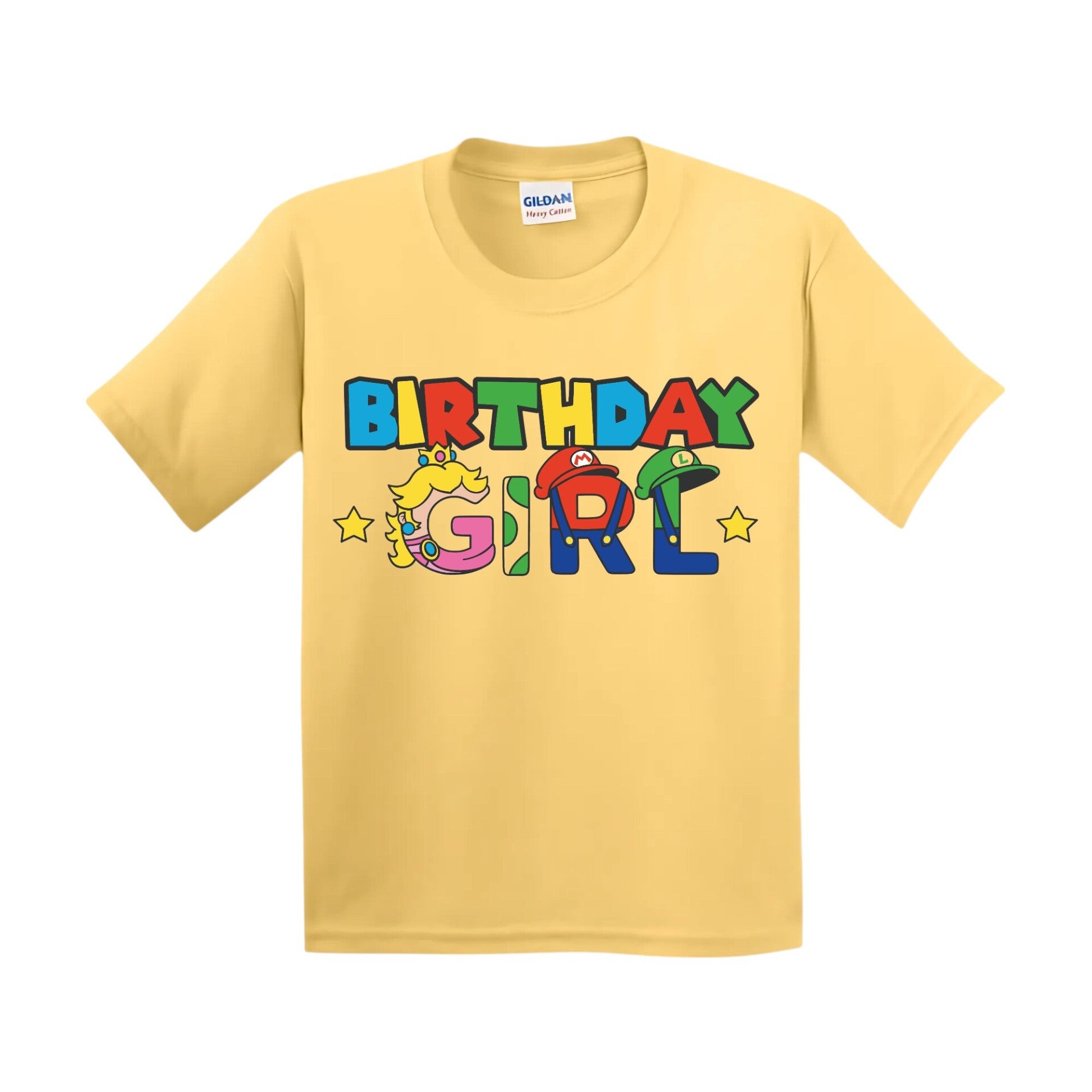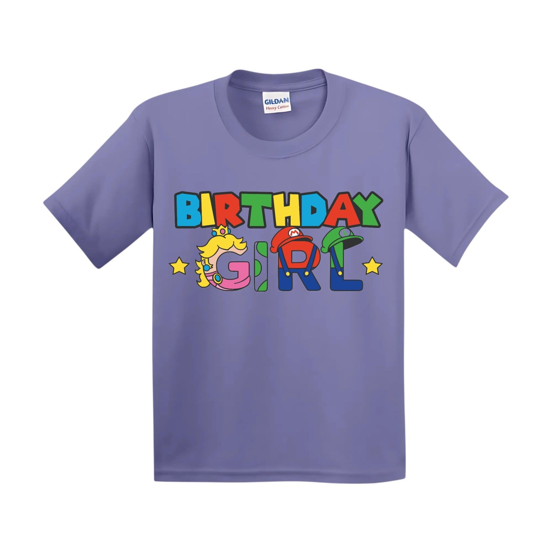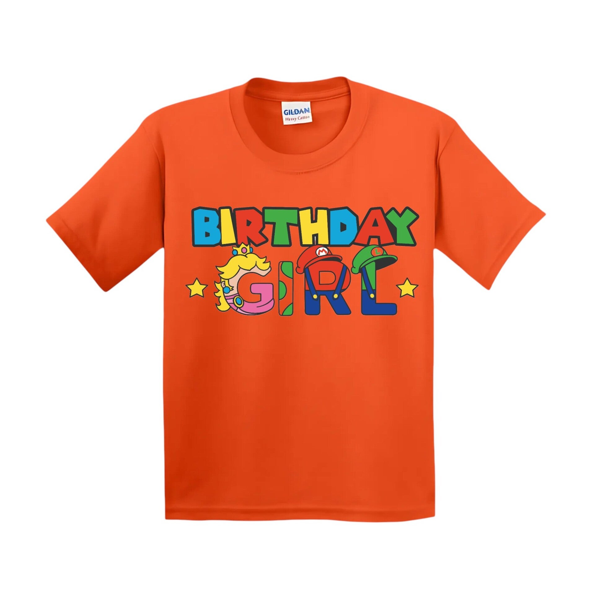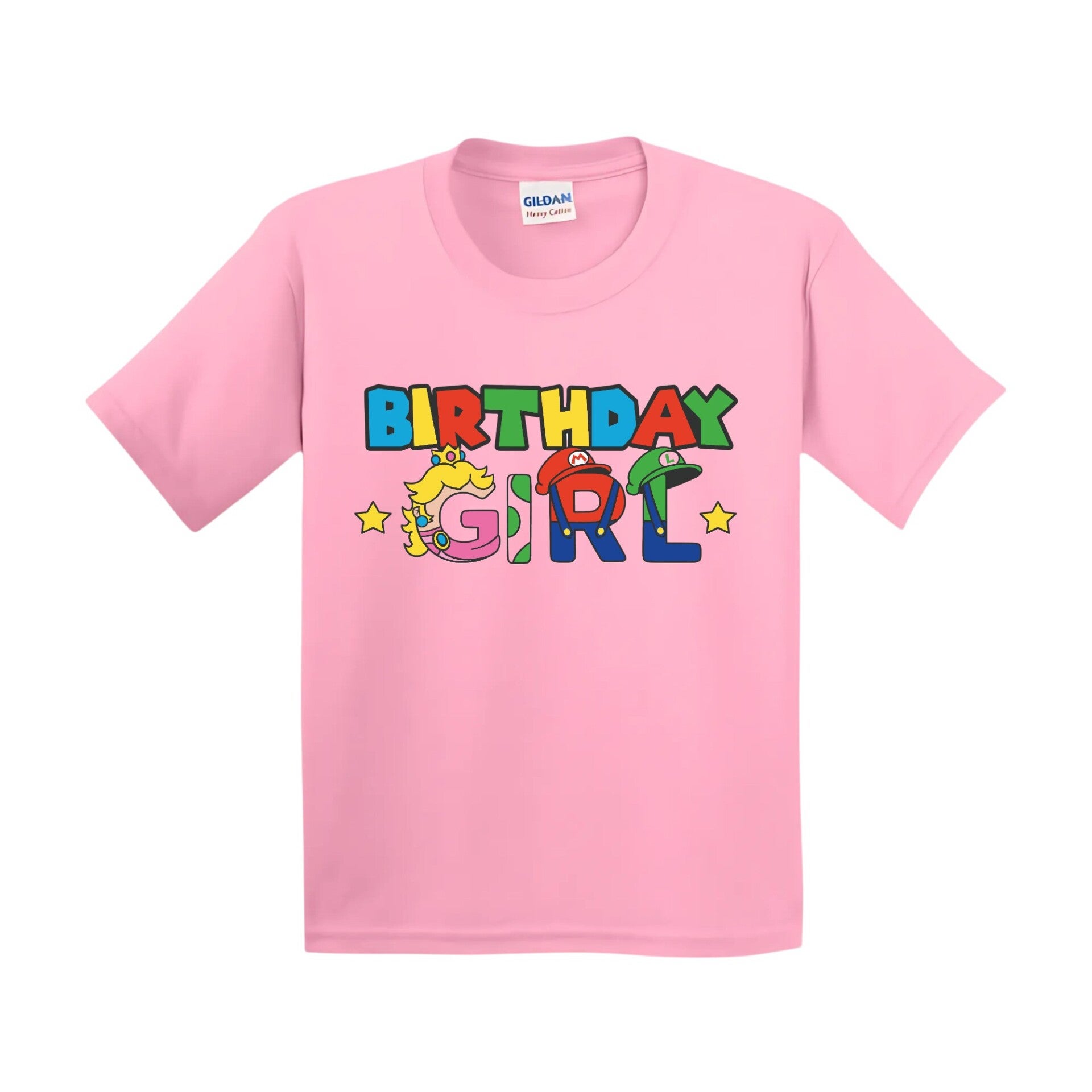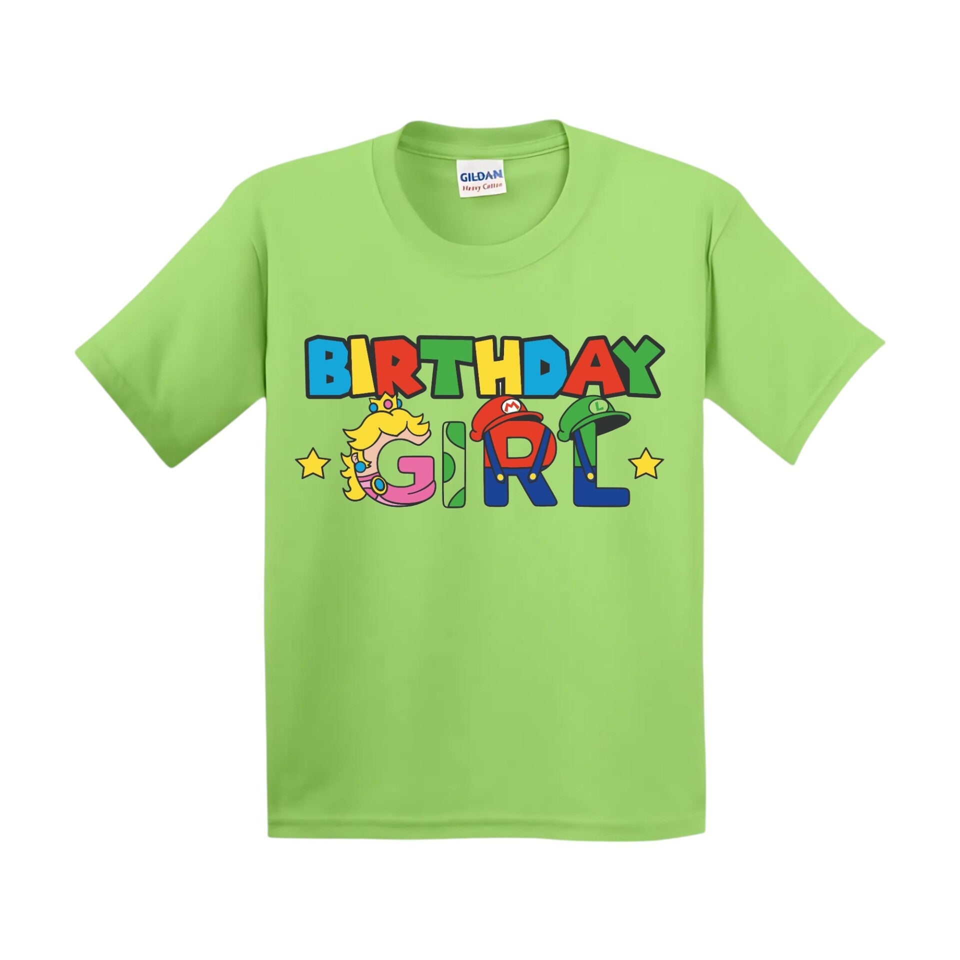 🎉 Kinder T-shirt "BIRTHDAY GIRL" in Mario Bros Stijl – 100% Katoen 🎉