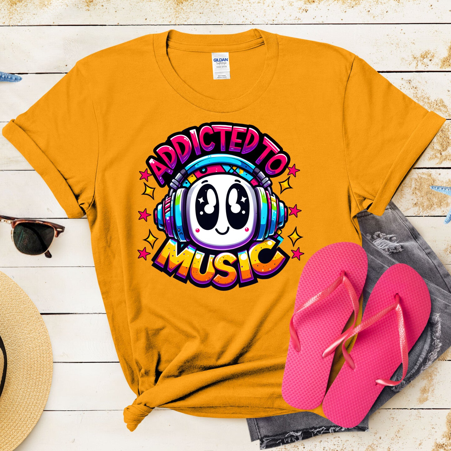 Dames Zomer T-shirt – “VERSLAAFD AAN MUZIEK” | Kleurrijke Muzikale Opdruk | 100% Katoen | DTF Print Voor de echte muziekfans en festivalgangers: dit frisse dames t-shirt met de kleurrijke opdruk “ADDICTED TO MUSIC” laat jouw liefde voor muziek perfect zien! Met levendige kleuren en een speels ontwerp vol met iconen is dit shirt een must-have voor elke zomer vol beats en vibes. Materiaal: 100% geweven katoen – zacht, licht en comfortabel voor warme dagen. Pasvorm: Vrouwelijk model met korte mouwen en ronde hals – casual en flatterend. Bedrukking: DTF-print in schitterende kleuren zoals paars, blauw, rood en geel – helder, duurzaam en wasbestendig. Ontwerp: “ADDICTED TO MUSIC” in een dynamisch lettertype, omringd door kleurrijke symbolen zoals noten, koptelefoons, vinylplaten en speakers. Beschikbare maten: S t/m XL Kleur shirt: Frisse zomerse festivalkleuren Perfect voor: Festivals, concerten, jamsessies, of gewoon om je passie voor muziek uit te stralen.