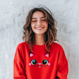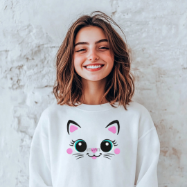 Kinder Sweater met Geborduurd Kattengezicht – Schattig & Comfortabel!